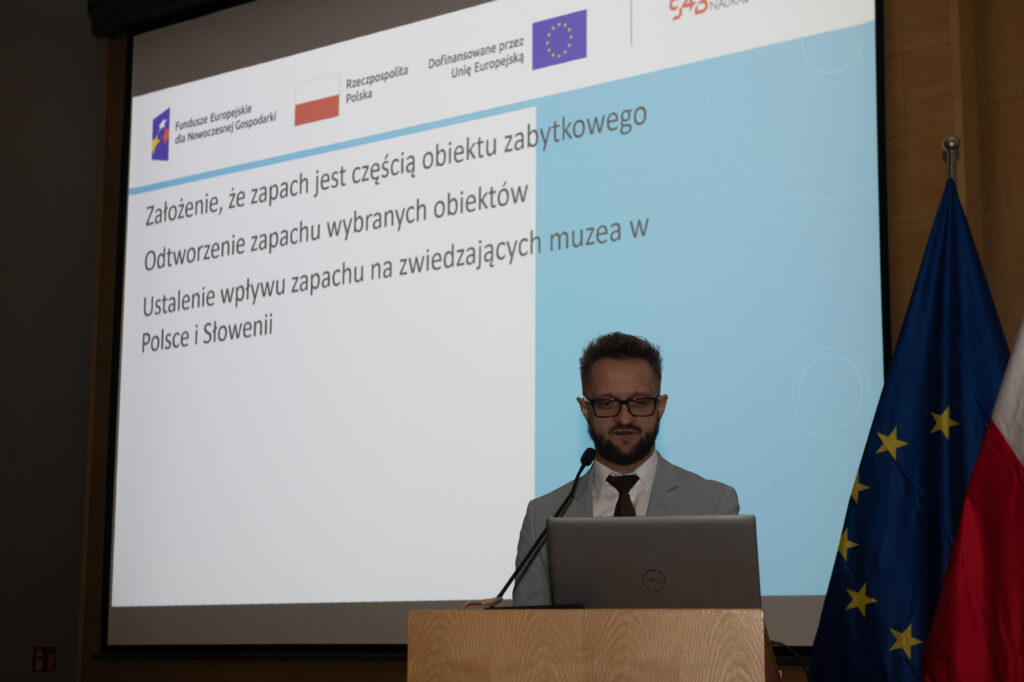 Podczas wydarzenia konsorcjanci zaprezentowali szereg ciekawych prezentacji, Uniwersytet Ekonomiczny w Krakowie reprezentował dr hab. Tomasz Sawoszczuk, prof. UEK, który przedstawił innowacyjne wyniki projektu „ODOTHEKA – wyłapywanie, rekonstrukcja i konserwacja zapachów obiektów zabytkowych„, którego efektem była m.in. rekonstrukcja aromatu „Damy z gronostajem”.
